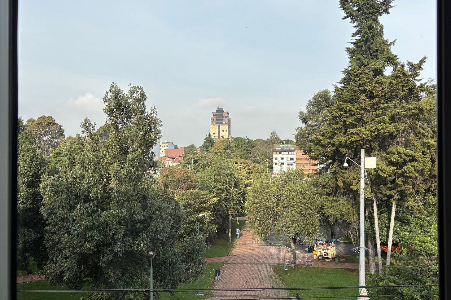 After a few weeks off from sleuthing (but still enjoying the views and write-ups), I got the itch again. But it wasn’t until a few hours ago that I finally cracked the sign’s words “Prado Monitoreada,” which means “Park is Monitored,” thus I assume we’re in a Spanish language country. So I’m taking a WAG because I couldn’t identify any other clues to help: Mexico City, Mexico.