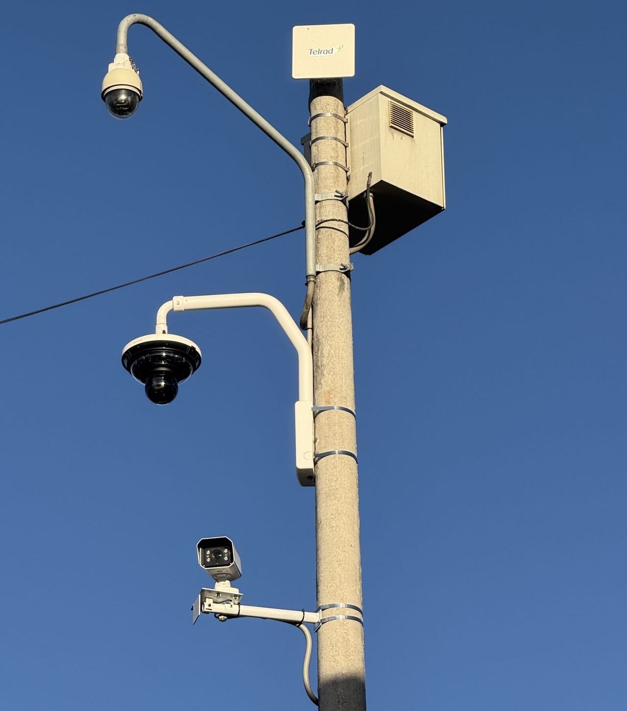 I ran out of time (heliskiing and then taking my daughter on a tour of Colorado colleges). My best guess is [city redacted]. A big clue is the 360-degree camera on the pole with anti-climbing spikes, which matches a photo from TELRAD [redacted], announcing its expansion into “Smart City Solutions” (i.e. Big Brother Video Surveillance):