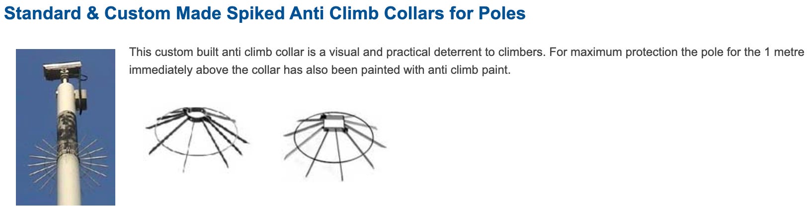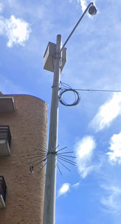 I found similar instances of the surveillance cameras on poles with spikes in [city redacted] — for example: